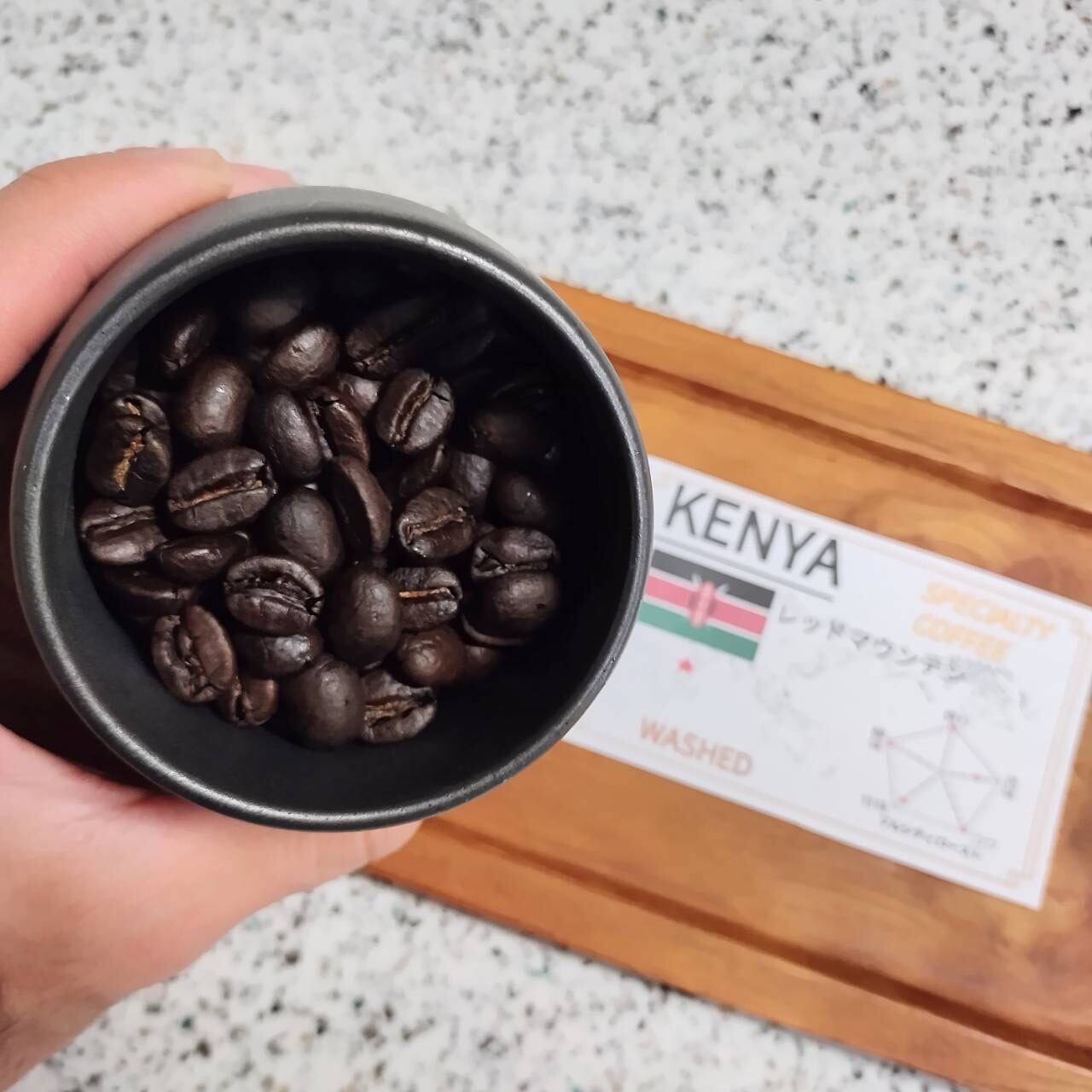 そのカップにはケニア独特のスパイス系の香味、それを支えるしっかりとした質感がそなわっています。